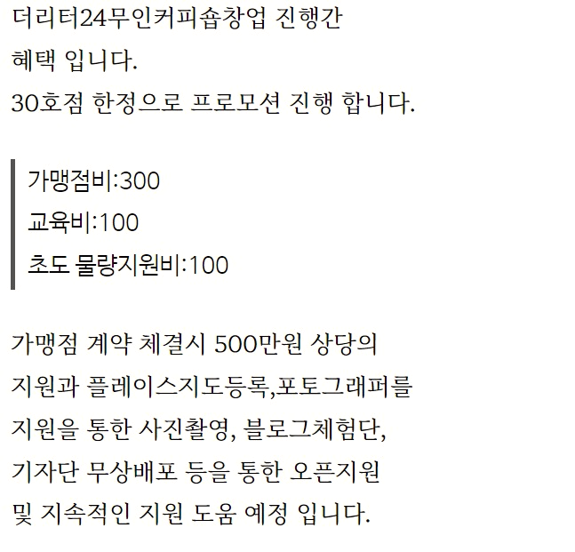 더리터24무인커피숍창업 통해 창업 리더 더리터와 함께할수 있습니다.