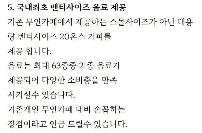 무인 카페 자판기 렌탈 서비스의 주요 장점은 다음과 같습니다: