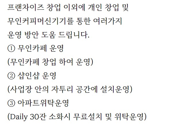 프랜차이즈 창업 이외에 개인 창업 및 무인카페커피자판기 를